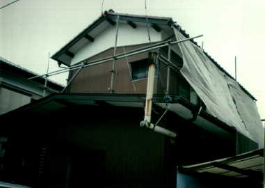 このお宅の場合は窓はすべてアルミサッシに替えましたので、先にまずは、既存窓を壊してサッシを取り付けます。